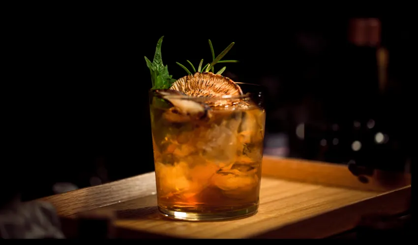 Tanteo Jalapeño Tequila, Pelotón Mezcal, lime juice, agave, splash of orange juice, Tajin rim